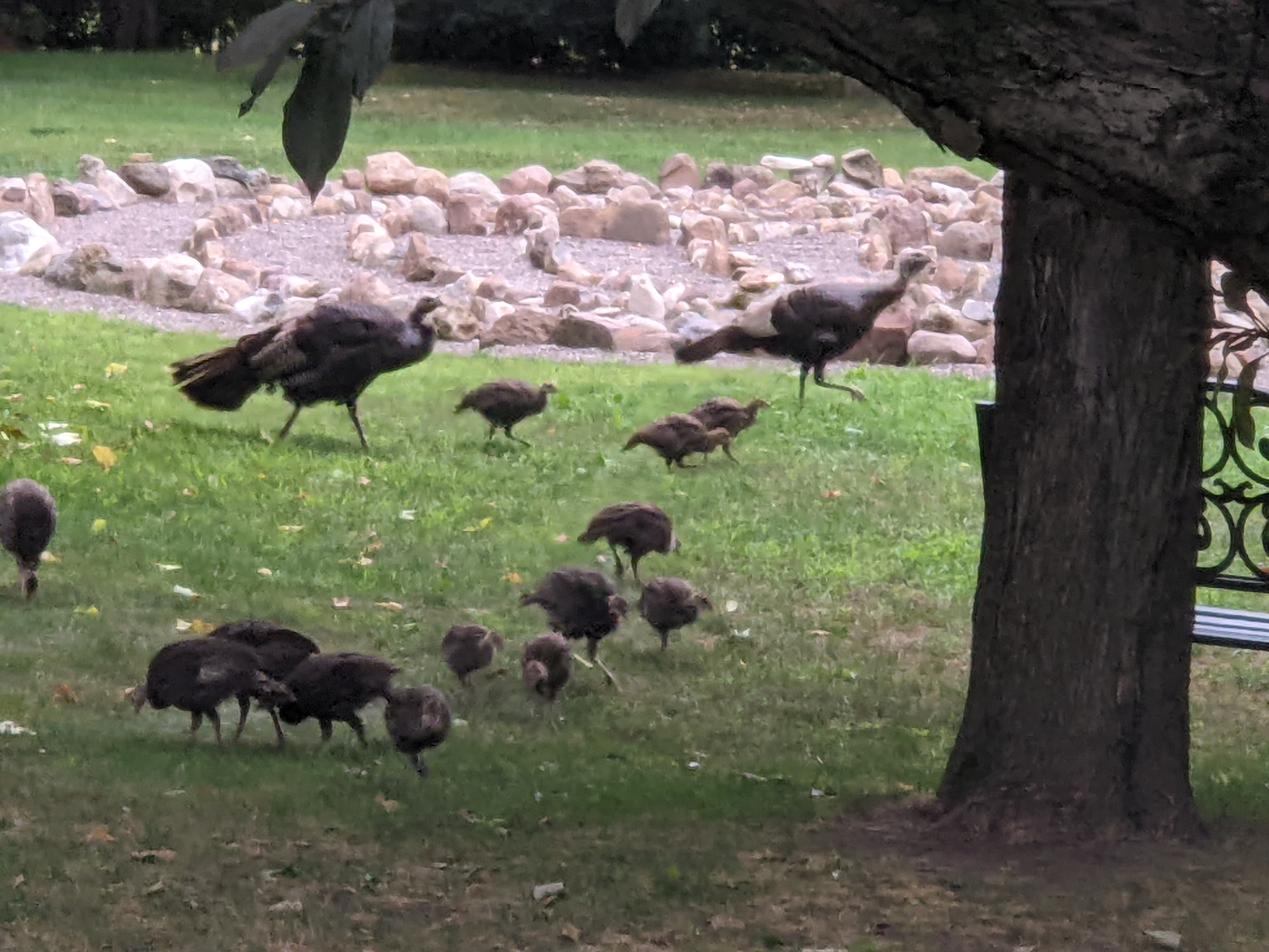 “We’re going to keep right on going,” I said more authoritatively than I felt, and then I switched sides with her so I was the one closest to the bird gang as we scooted by. With our heartrates elevated and the turkeys avoiding eye contact, we came through the gauntlet unscathed.