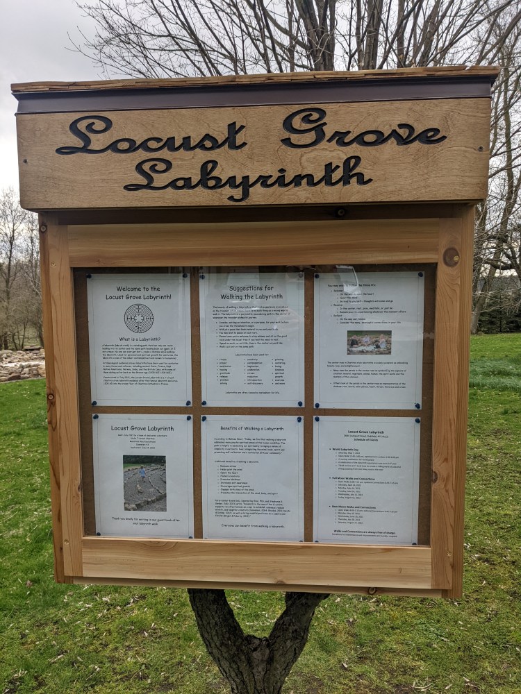 Check out our information kiosk, built by Wayne Shamblin, an amazing craftsman. In July 2021, he and a team of dedicated volunteers designed and built Locust Grove Labyrinth in less than two weeks!